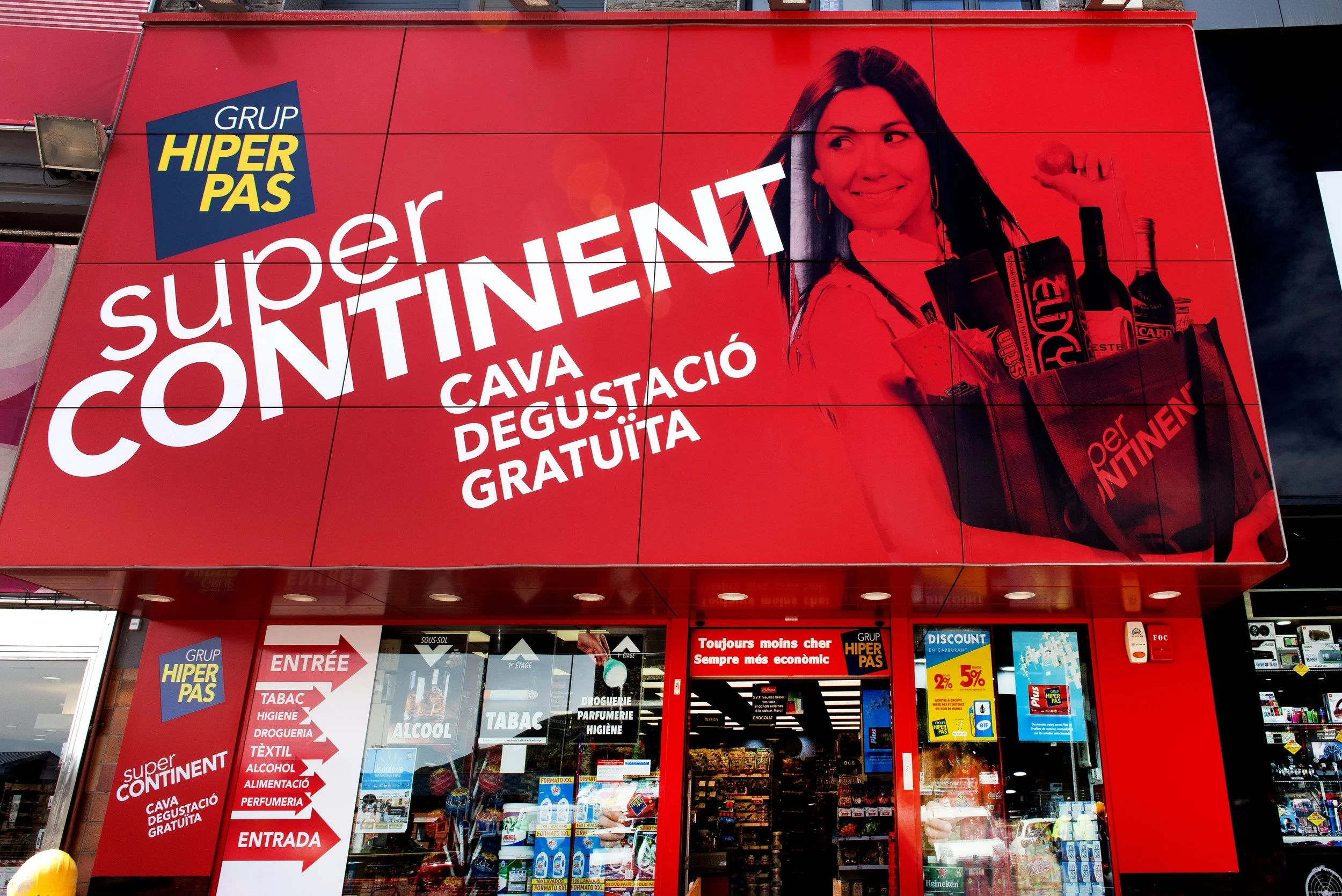 Supermercat de tres plantes, on trobar un ampli assortiment de productes alimentaris, drogueria, perfumeria, begudes alcohòliques i tabac. Destaca la seva Cava, a la planta -1, on el client pot degustar i comprar a granel diferents vins i licors.